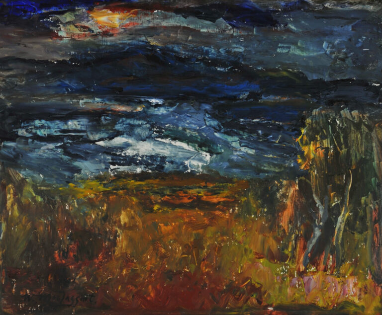 Landscape painted in thick impasto, in vivid colours.