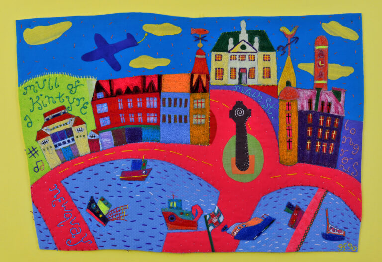 One of a series of five textile works of towns in Argyll using applique and embroidery techniques. These textile works were created as part of Flemings s Artist Residency in Argyll and Bute as part of the Glasgow City of Culture programme in 1990