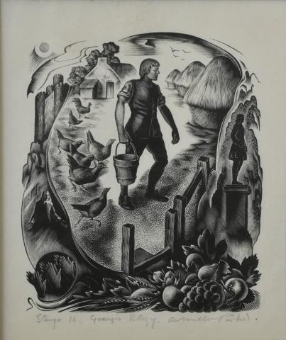 Agnes Miller Parker (born Irvine, 1895- 1980) studied and taught at Glasgow School of Art. She was known for her draughtsmanship and skillful sense of design. In the early 1930s she became well-known for her distinctive woodcut illustrations produced for the Gregynog Press in Wales. Her illustrations for Aesop s Fables were particularly celebrated, as were her sets of engravings for several Thomas Hardy novels made on the 1950s.
