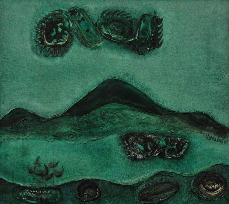 Setlur Gopal Vasudev (born Mysuru, India, 1941) studied art at the Government College of Arts in Chennai and has a studio in Bangalore. He works in painting, drawing, copper relief and tapestries.