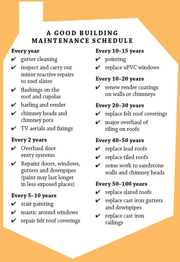 The schedule below is a general guide as to when different elements may require work, (click on the image to enlarge).
