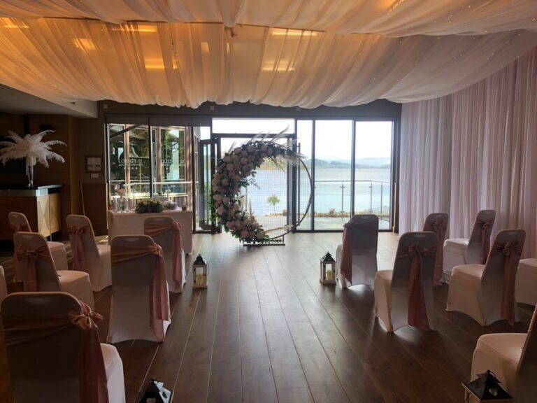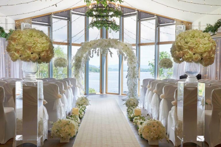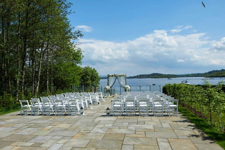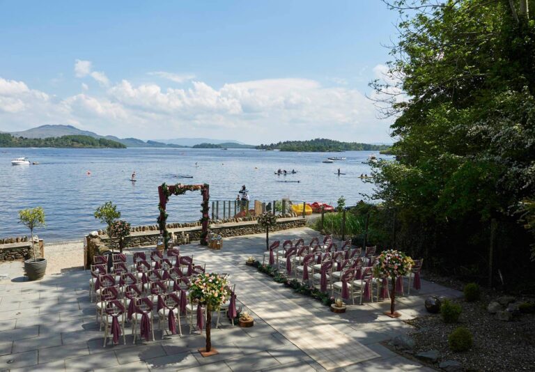 There are many stunning choices for you to have your wedding ceremony: the jetty, the romantic, arch in front of Loch Lomond, or the elegance of the wedding venue room with Loch views. All are beautiful options to have an outdoor or indoor wedding, and there is no need to fear the rain as Lodge is setup well for a wet weather day. Create your perfect Scottish wedding venue at the Lodge.