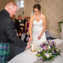 While facing each other, the couple will join hands while a cloth  is tied around their hands in a knot. This is where the term “tie the knot” came from. Couples often choose to use a cloth made of a particular clan tartan or a specific colour of cloth symbolising something important to them.