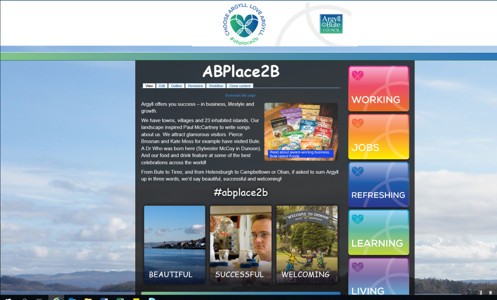 www.abplace2b.scot brings together information someone wishing to move to Argyll and Bute would want to know. It has links to information on services, schools, jobs and things to do. It also offers local businesses and people the chance for promotion, by explaining why they have chosen to put down roots here.