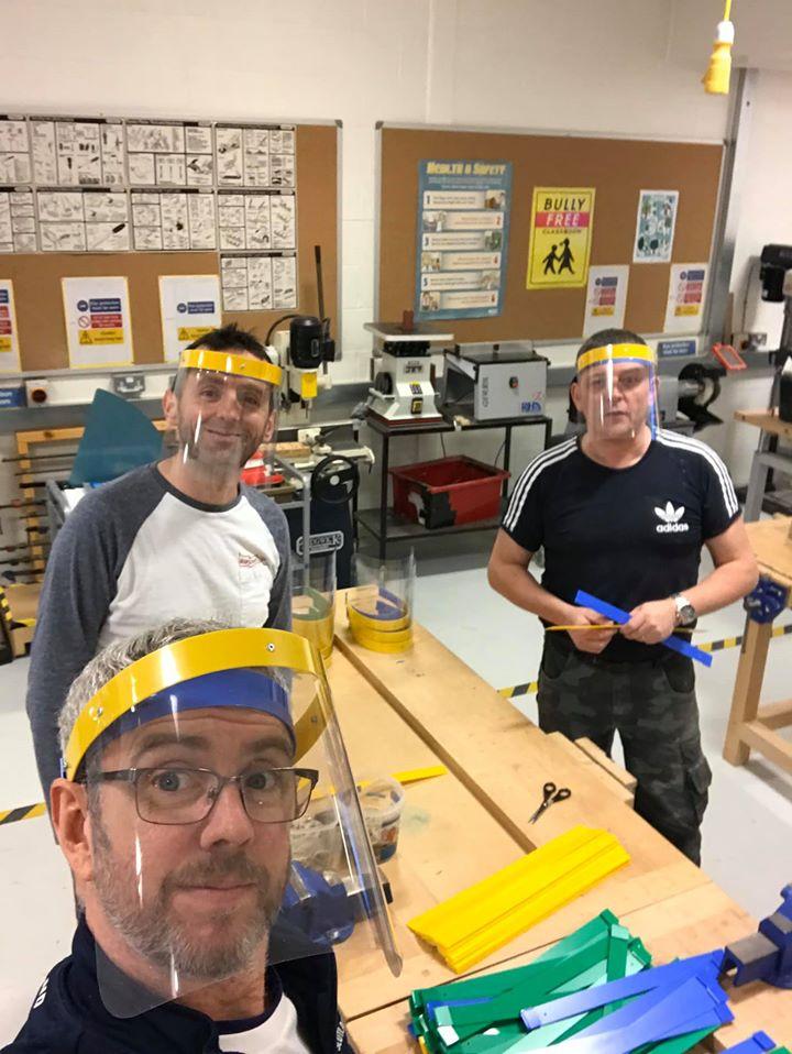 Damian Heaney, Ronnie Dott and David Berry created a prototype which was approved by the NHS, before setting about creating the visors using materials from the school’s technical department, such as acrylic, acetate and pop rivets.