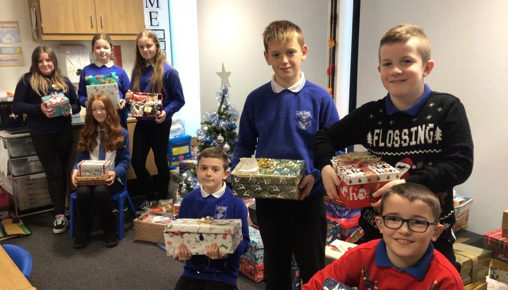 This was no easy task, with each box and its contents having to be thoroughly sanitised to adhere to Covid guidelines, but the children did it with a little bit of help from school staff, and primary seven pupils have been busy delivering them.