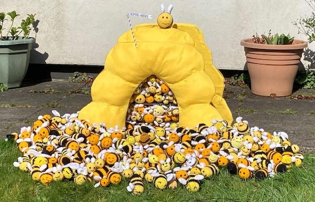 The school’s values are ‘Bees’: Be Kind, Be Respectful, Be Responsible and Be the Best You Can Be. So, the parent council invited people to knit a unique bee for every member of the schools – 450 pupils and staff!