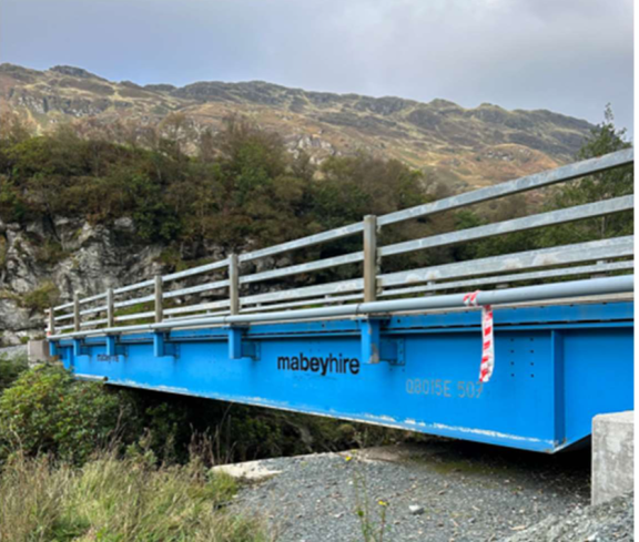 After 7 October 2023, the council constructed a diversion road through a field to the north west of Balliemore Bridge, which allowed a temporary bridge to be placed slightly upstream of the existing bridge. The temporary bridge arrived onsite on 28 November and the road was opened safely on 1 December.