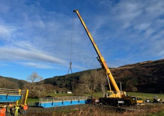 29th November - The bridge arrived on site on 28 November and we carried out the additional works required, such as completing approach ramps and surfacing works.