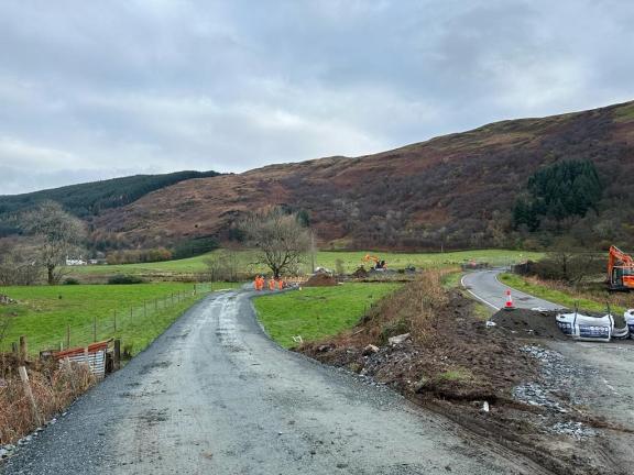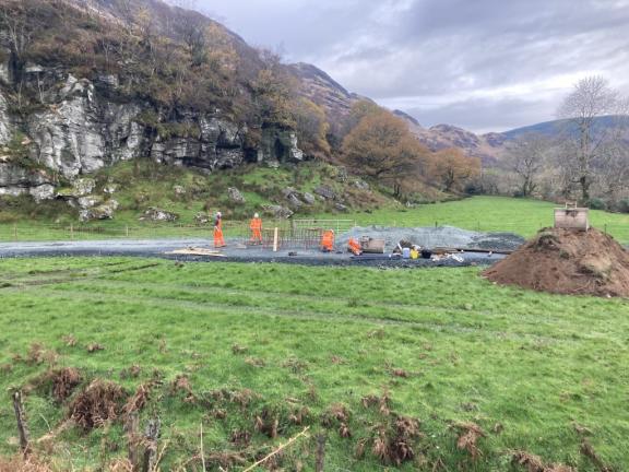 This image shows the temporary diversion road being constructed through field to north west of the Balliemore Bridge -