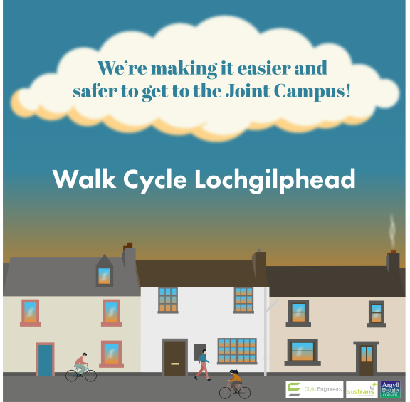 Walk, Cycle Lochgilphead is a project aimed at improving the walking, wheeling and cycling experience between Lochgilphead Joint Campus and the town centre. The project is funded through the Sustrans administered Places for Everyone programme that seeks to make streets safer and more attractive for pedestrians and cyclists.